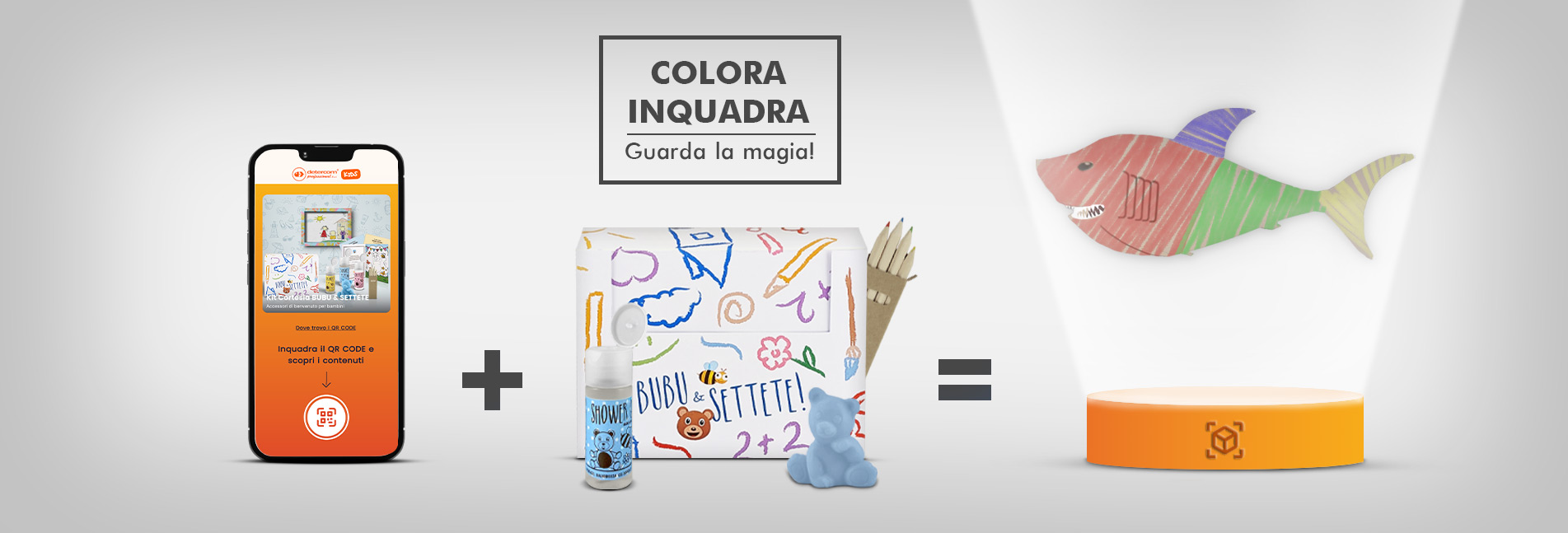 Il set cortesia Bubu&Settete si rinnova con una proposta ancora più originale per gli ospiti più piccoli. La nuova scatola contiene infatti, oltre ai cosmetici e al set di matite, due talloncini con QR code che danno accesso a due nuovi giochi interattivi pensati per coinvolgere i bambini in attività creative e divertenti.